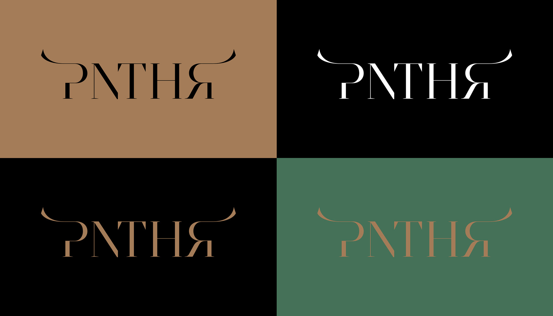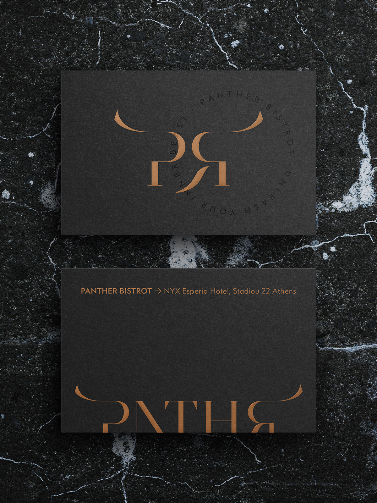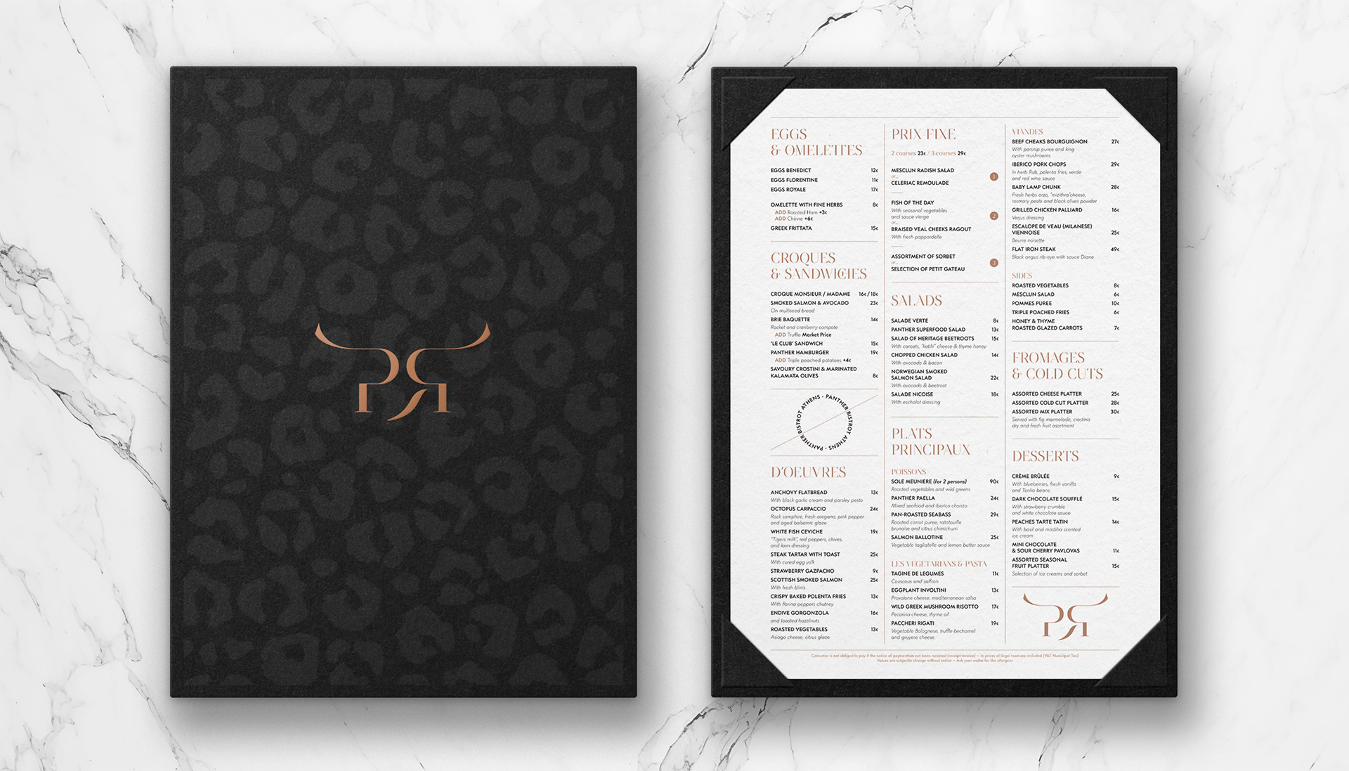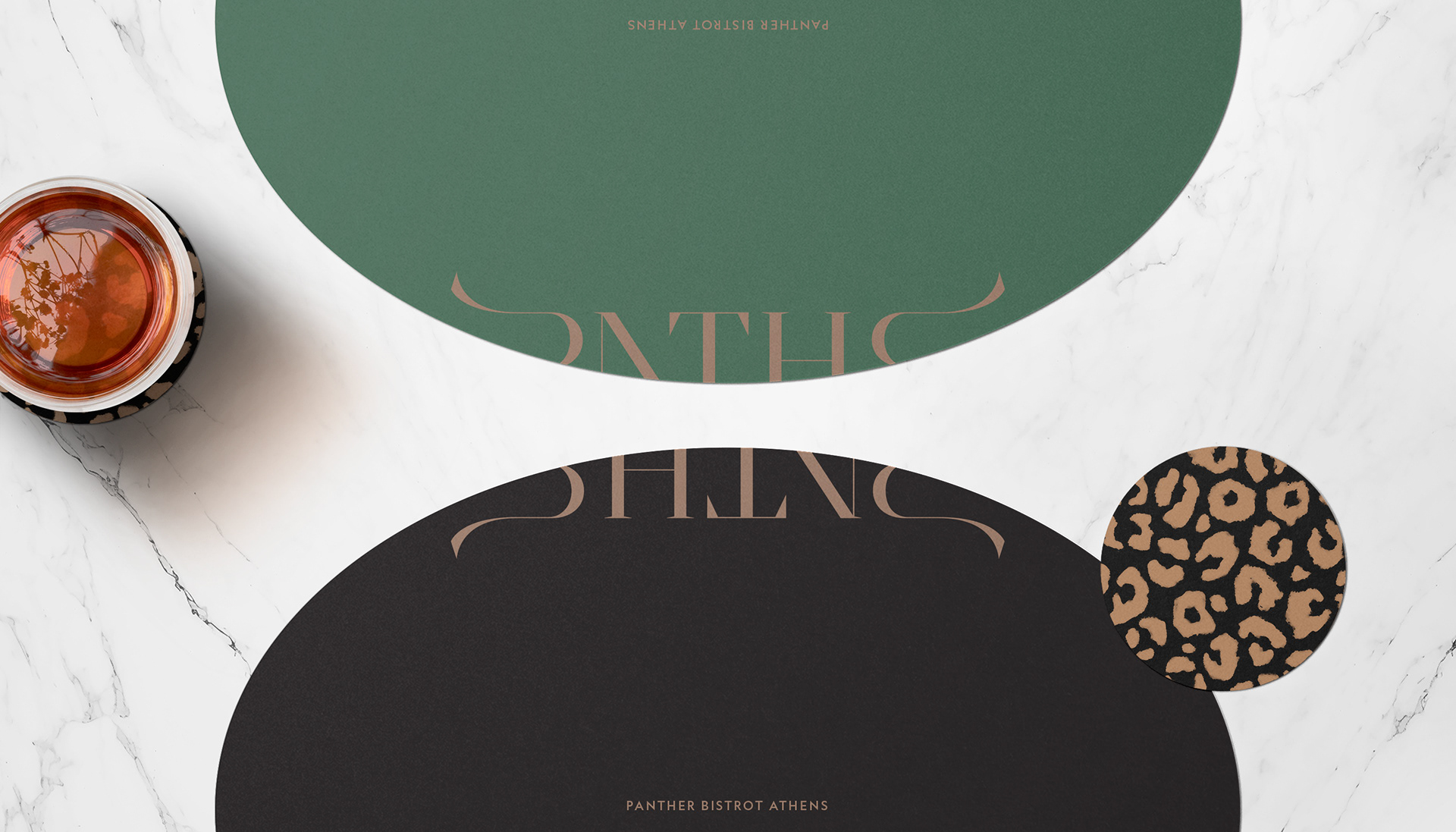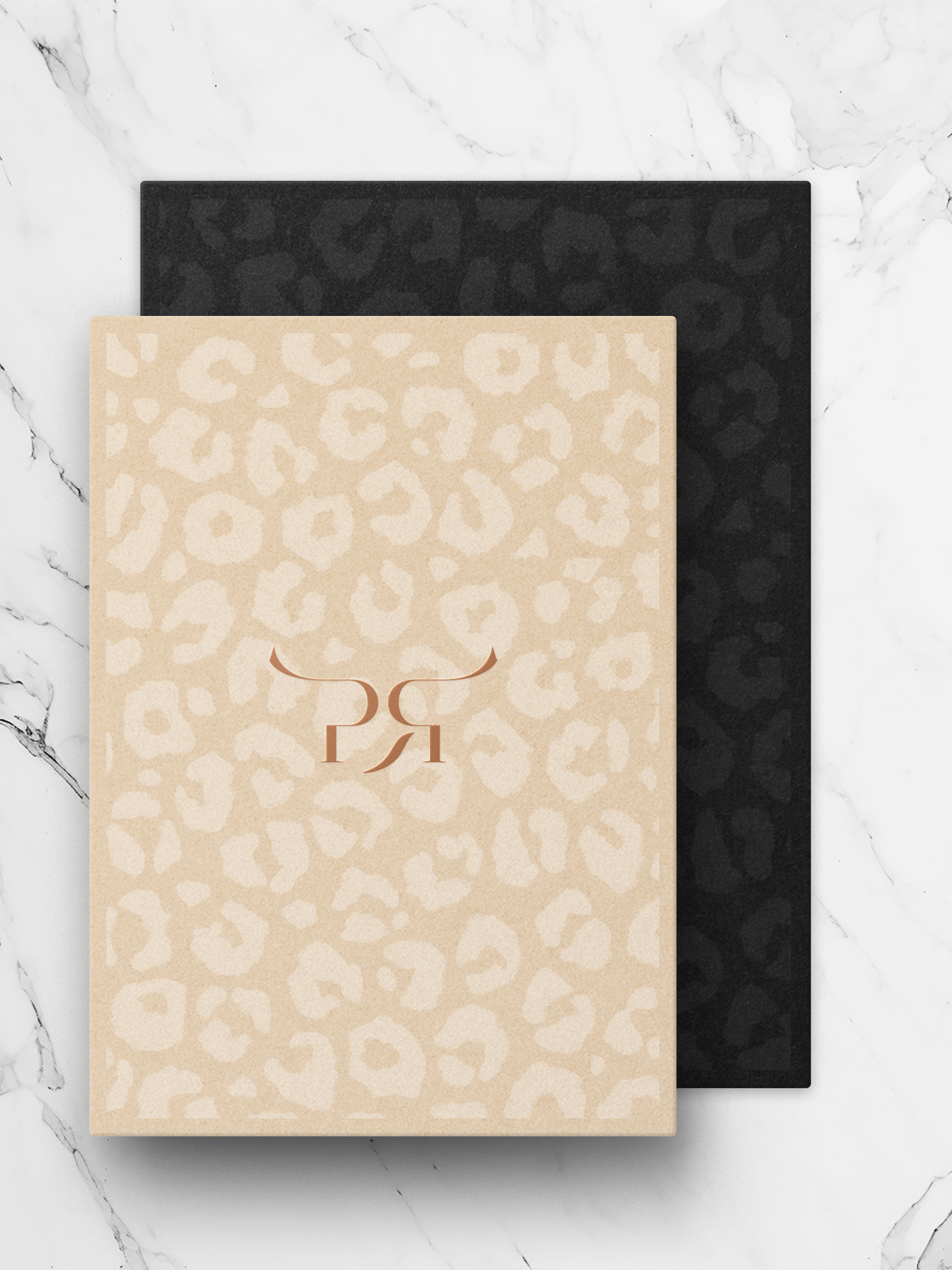 The logotype had to be sophisticated and distinct in order to represent the space's atmosphere and design. We used the elegant Argesta Hairline font which ticks all the boxes. We removed the vowels from the word, noticing that it can still be readable while acquiring a more modern and dynamic character. Also, the cuts and the extension in the letters P and R allude to the shape of the panther's eyes.