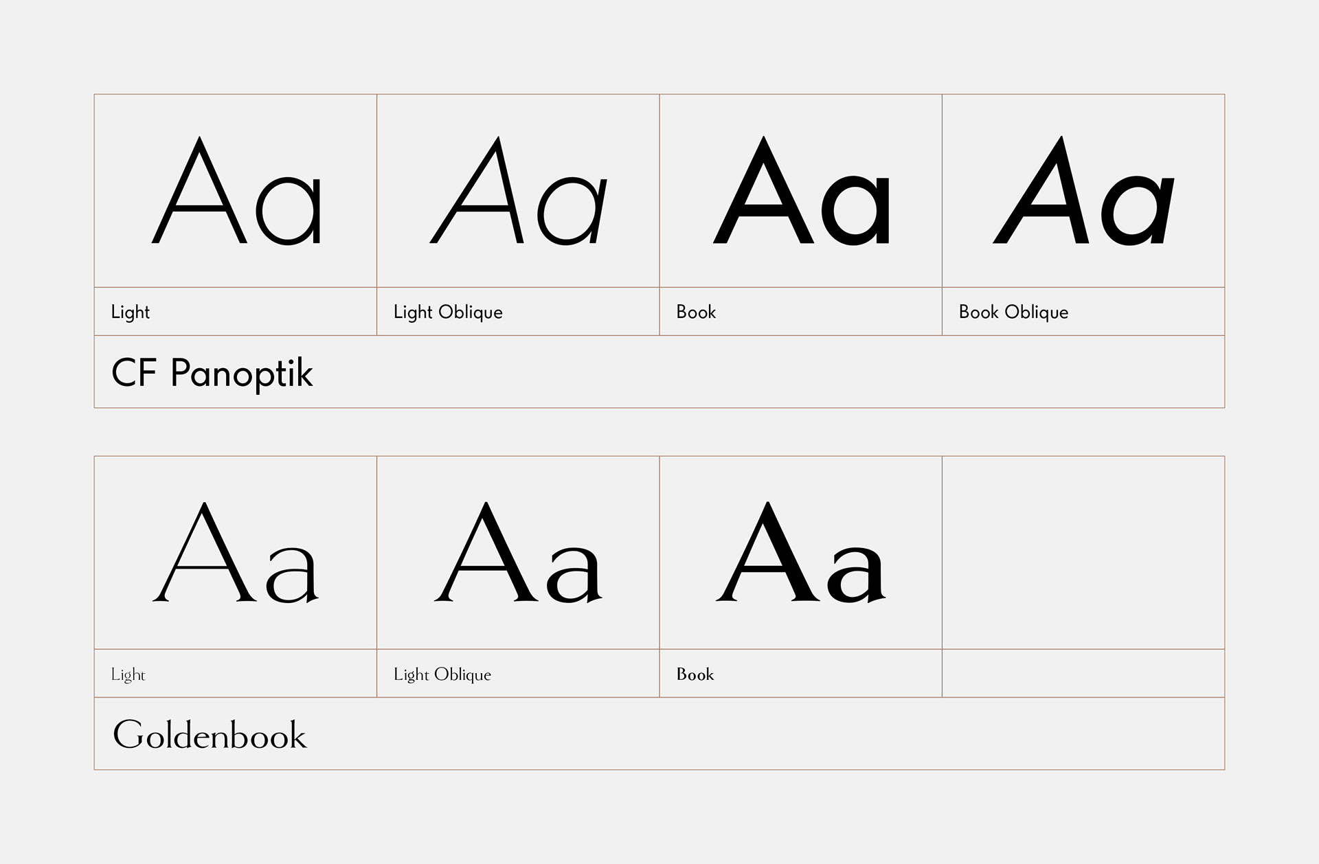 As for the typography, we opted for the CF Panoptik by fonts.gr and Goldenbook by Mark Simonson Studio to present different types of information included in the applications.