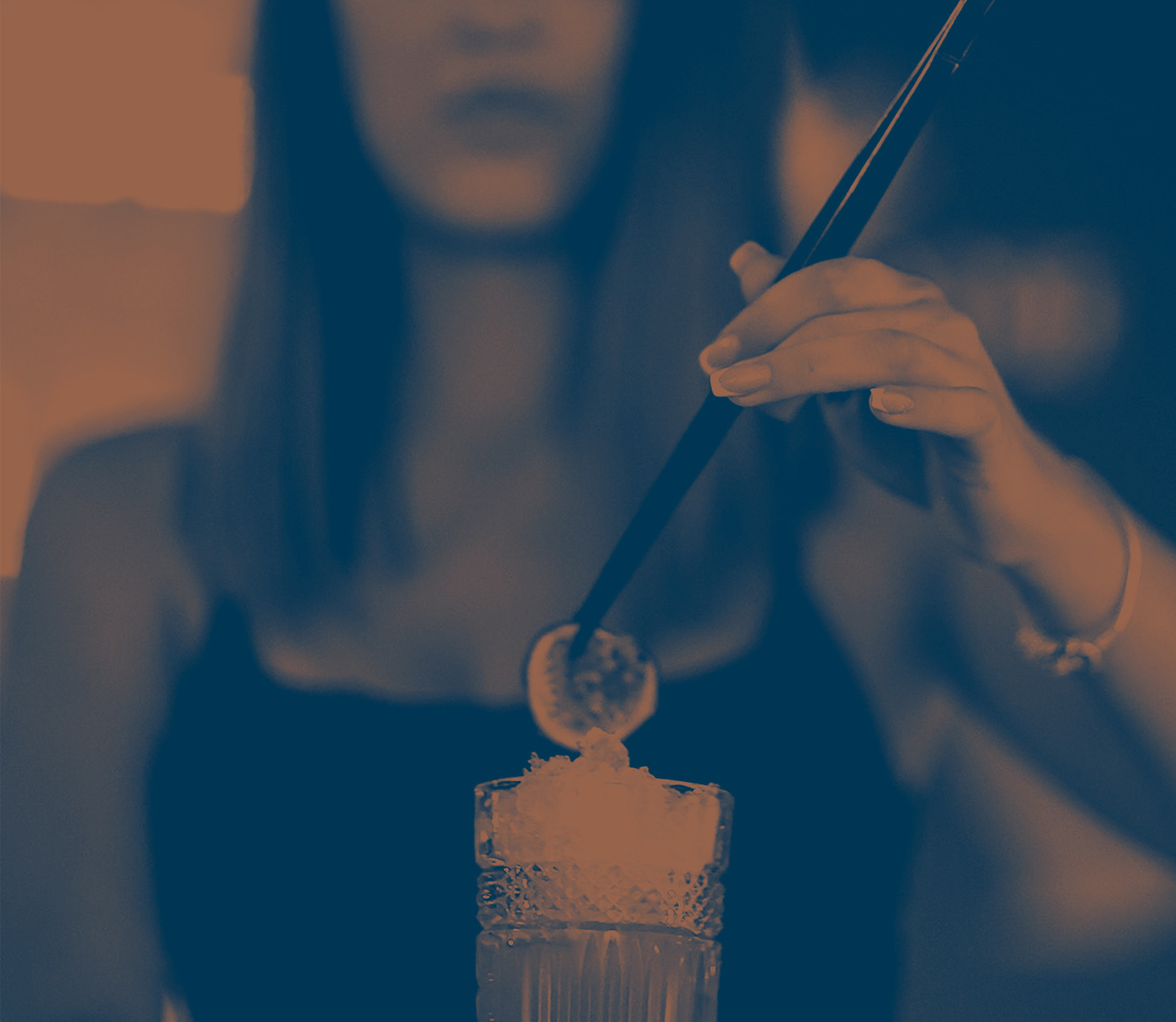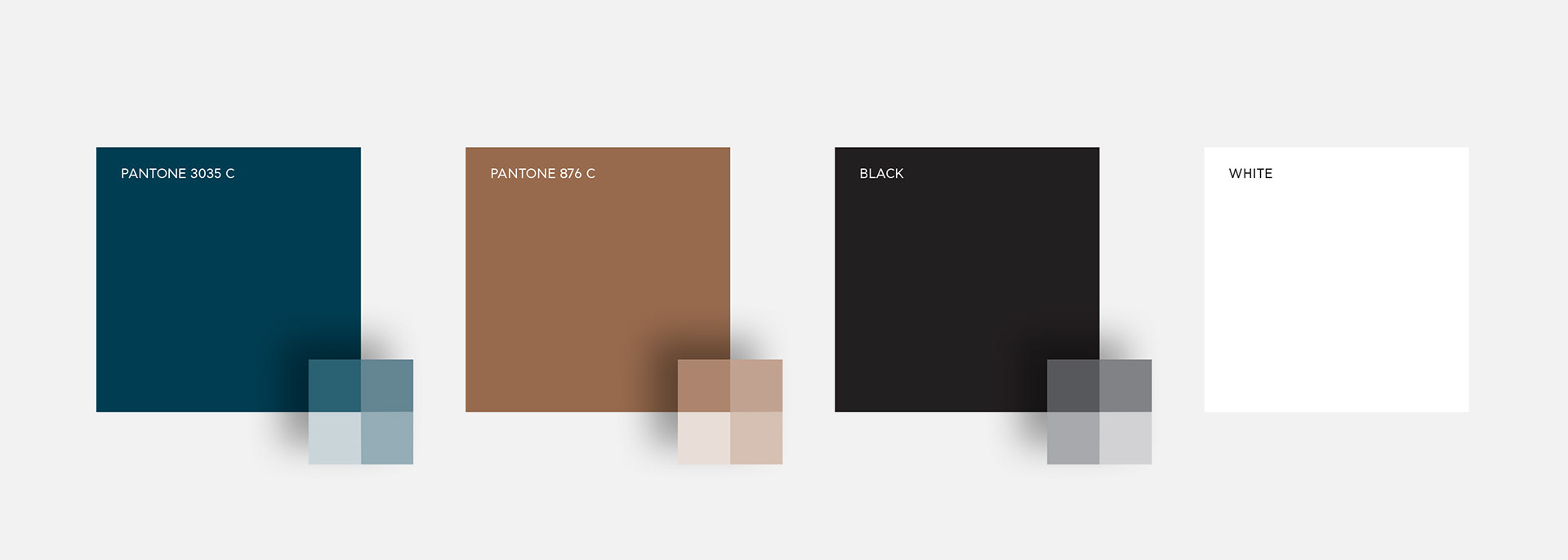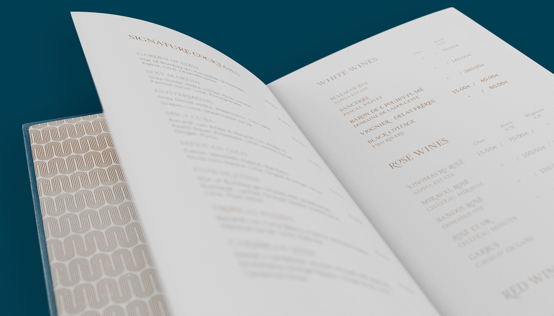 For the applications, we used a limited pallette consisting of three main colours. A nightish shade of blue along with white were chosen to hint at the all-day character of the bar complemented by copper accents, which allude to various details of its interior.
